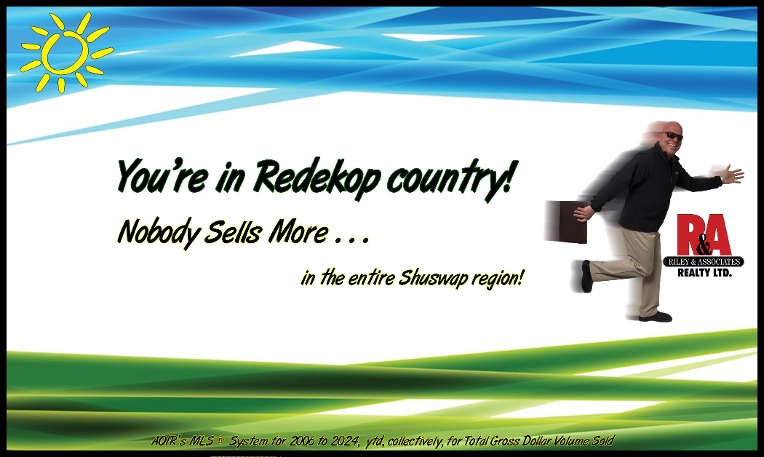 Shuswap real estate with the Kent Redekop*PREC - REALTOR® – waterfront, residential, commercial, land and recreational properties. Kent, with over 37 years experience, is knowledgeable, professional, hard working, honest, personable and enthusiastic. These attributes make Kent the clear choice as your Shuswap Lake real estate professional. Serving Shuswap Lake and surrounding areas including Salmon Arm, Blind Bay, Eagle Bay, Sorrento, Chase, Adams Lake, Scotch Creek, Celista, Magna Bay, Anglemont and St. Ives for over 20 years. Although buying or selling your home is serious business, the process should be a productive, yet enjoyable experience. Kent will lead you through the ever changing real estate market with confidence.